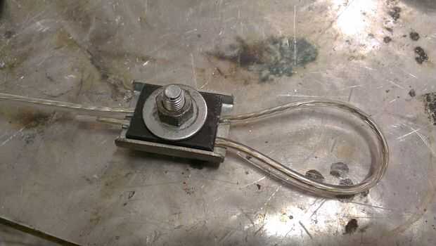 Con cable de acero y núcleo de acero línea de ropa, sólo no puede atar un lazo en el extremo; es necesario terminar correctamente. Hice algunos accesorios para ella de bits que tenía a mano, pero puesto que las conexiones son más anchos que el cuerpo de dolly, establecerla requiere quitar las conexiones de un extremo, la línea a través de la alimentación, luego reemplazando la terminación del cable (aún menos complicaciones que la dolly de desmontar y montar alrededor de la línea). Terminaciones de cable de acero también están disponibles en el mercado y debe si usted está comprando cable de acero.