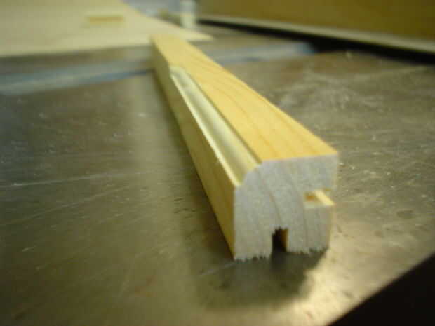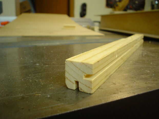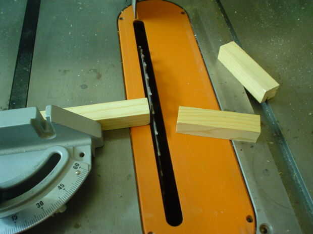 Mientras que la cuchilla está ahora es un buen momento para cortar ranuras en las piezas de esquina de los restantes pies 2 de madera. Ajuste la guía de corte a 3/8" y cortar un surco frente a la madera, luego rotar el stock a fin y gire la culata en el borde y rip otra ranura en el borde mismo para hacer una pieza de esquina futuro. Ahora ajustar la altura de la lámina para ripear el stock completo 3/4" y ajuste la guía de corte a 3/4". RIP el borde acanalado doble de pie 2 pieza por lo que ahora tienes un 3/4" cuadrado pedazo de stock con dos ranuras adyacentes como se ve en la foto. Con el afeitado de calibre de inglete aproximadamente 1/8" el extremo al cuadrado luego corte dos 3" piezas de la culata. Ahora con el router, corte la esquina frente a la Plaza de 3/8" entre las ranuras de la parte restante de stock (sólo necesitará cerca de 4 1/2" así que sujete un extremo y el otro de la derrota). Esto hará que las esquinas delanteras. El enrutamiento es puramente cosmético y opcional. Otra vez con el calibre de ingletes corte dos piezas de 2" desde el extremo dirigido. Es mejor alimentar la esquina enrutada hacia la hoja en la parte superior para evitar el astillado del trabajo router bastante nuevo.