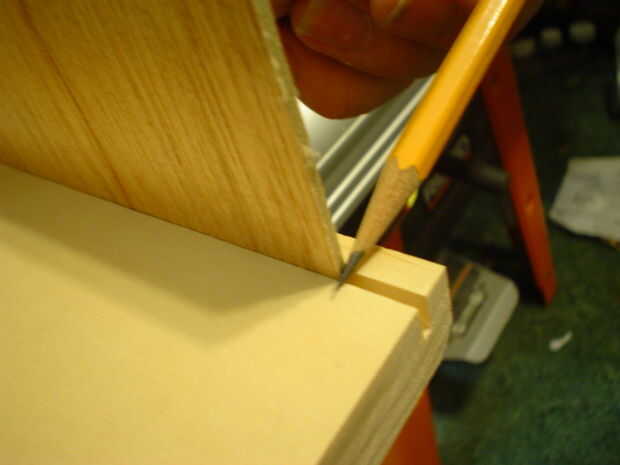 Pruebe la colocación de las tiras de 2" y 3" luan en las ranuras de la rejilla superior junto con las piezas de esquina manteniendo el color de las esquinas.  Usted tendrá que cortar las piezas de luan basado en las ranuras en las esquinas.  Será cerca de 35" de largo.  Una vez que todo está en forma y color, marque los extremos donde va la luan con un lápiz.  Quitar la luan, Aplique pegamento en la ranura y volver la luan asegurarse de permanecer dentro de las marcas del lápiz.  Más colas no le darán una segunda oportunidad aquí.  Presione la luan en los surcos.  Aplique pegamento en la ranura correspondiente de las piezas de esquina y uno de los extremos y pegar en su lugar mantener al ras con el frente y los lados.