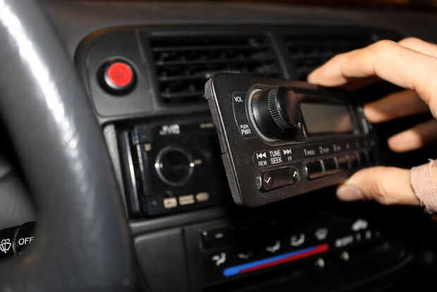 Imagina que eres un ladrón, merodeando en busca de un radio de posventa y agarrar una porción del estacionamiento. Pasar por mi poco cívico, vea solo un cutre radio stock (sin incluso un reproductor de cintas) y sigue caminando. No darse cuenta era solo un falso sobre mi dulce JVC receptor.