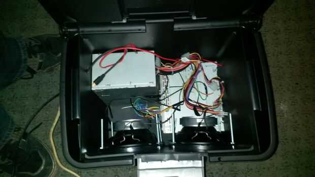 yo y mi amigo tiene junta por lo tomamos una vieja radio aparte y quitar la platina a casetes y la vivienda y luego se corta una vieja caja de herramientas y lo relleno in lo llamamos un radio en una cajaPaso 1: Como se ve en el interior El interior