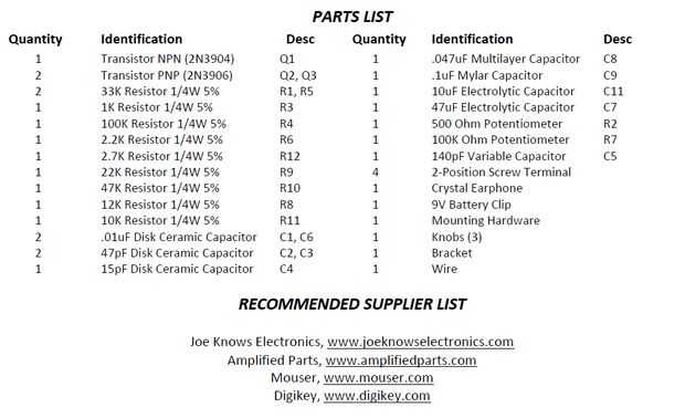- Los transistores de la radio pueden adquirirse en Amazon o Radio Shack (asumiendo que todavía están en negocio en su área). Recomiendo el excelente kit de semiconductores de Joe sabe electrónica. Incluye los transistores que necesita para este proyecto de radio y más de 150 diferentes tipos de transistores y diodos por sólo $22. E incluye un conjunto de documentos que son muy buena lectura para el principiante. Echale un vistazo www.joeknowselectronics.com. No será lo siento.