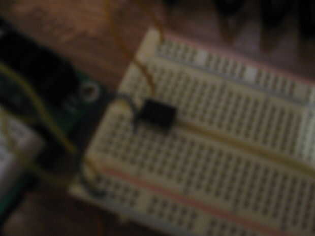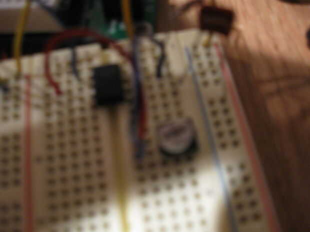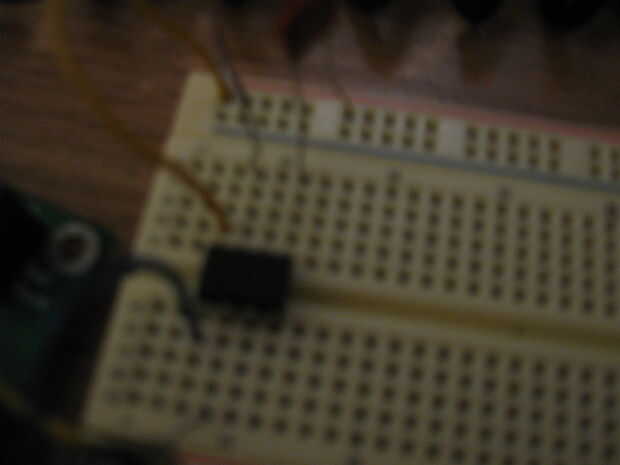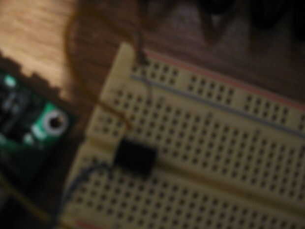 OK primero para empezar, que aplicaremos nuestra alimentación y tierra a los pines 1 y 8 respectivos. * Tras cierre de inspección de una diferencia bastante peligrosa en la funcionalidad del circuito me pareció urgente para agregar que si usted está usando una batería de 9v que necesita para poner un resitor trimmer o potenciómetro entre el lado positivo de la batería en el riel de alimentación en la placa o al pin 8 del temporizador de la viruta debido a que un 9v comenzará a calentar el chip 555 temporizador increíblemente rápido , y si izquierda expuesto a la sobredosis en tensión, podría conducir a un chip quemado o fuego. Todo lo que necesitas hacer con este "poder condensador de ajuste" sólo tienes que resistir el suficiente voltaje para la operación segura (trimmer debe resistirse a unos 1,8 ohmios). Para este paso puede que desee utilizar un multímetro, pero usted no necesita uno para recortar bien, simplemente coloque el dedo en el chip cuando se aplica voltaje y utilice un destornillador para ajuste de la energía abajo (aumento de la resistencia de la podadora). Si eres de tensión es demasiado altas que quemará el dedo así que le sugiere tener agua fría en algún lugar cerca para. También necesita desconectar la alimentación y la resistencia y deje que el chip se enfríe antes de intentar otra vez.