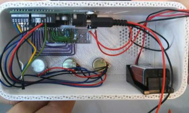 Luego coloque la batería en un lado de la caja y el conector de poder femenino en su contraportada. Conecte el conector macho al arduino.