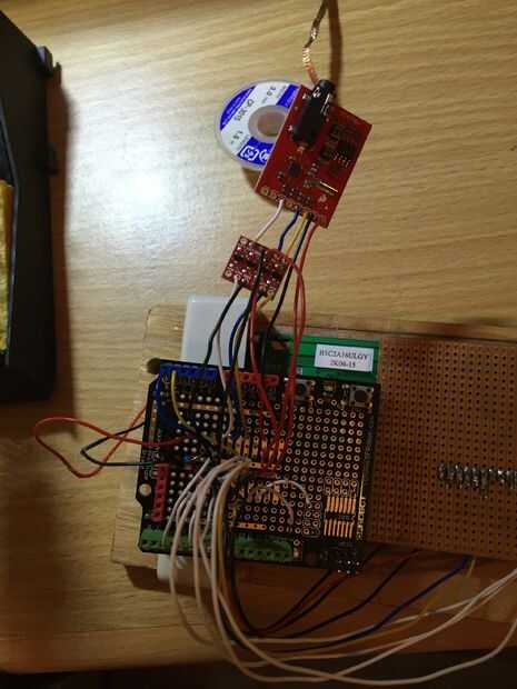 En este paso usé un escudo de prototipos para Arduino conectarse el Si4703, convertidor de nivel de lógica, pantalla LCD y botones de presión a Arduino. Simplemente transferir sus conexiones de la placa sobre el escudo y en la soldadura.