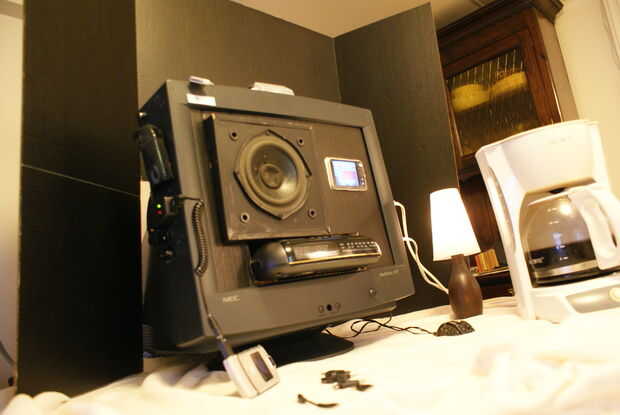 De todos modos, en este instructable, voy a mostrarles paso a paso cómo convertir un monitor de ordenador roto [y todo el hardware útil zombie tienes en enterrada en sus casas] en un centro de usos múltiples. Voy a usar una vieja sub bajo que encontré en la calle y será cable dos altavoces adicionales [(6W 4 OHM) combinado con la potencia por módulo de los sonidos del submarino] y crear una caja de resonancia de la acústica de la caja del monitor hueco creando un sistema sonido muy alto y claro... y para colmo puede alimentar todo lo que quieras de todo... incluso una makerrr de café!!!!!!
