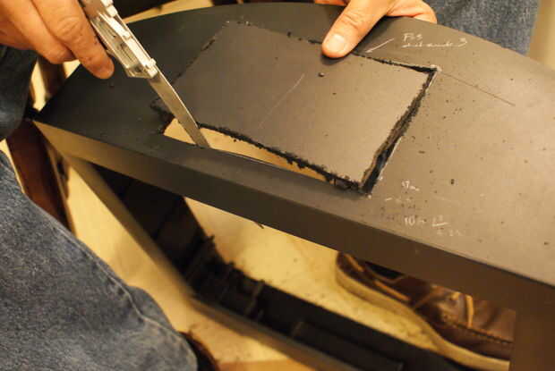 probablemente también tendrá que utilizar espuma de poliestireno o cartón corte salidas para crear apoyo para los componentes más pesados de nuestro proyecto (por ejemplo: sub, marco digital, reloj despertador digital.]