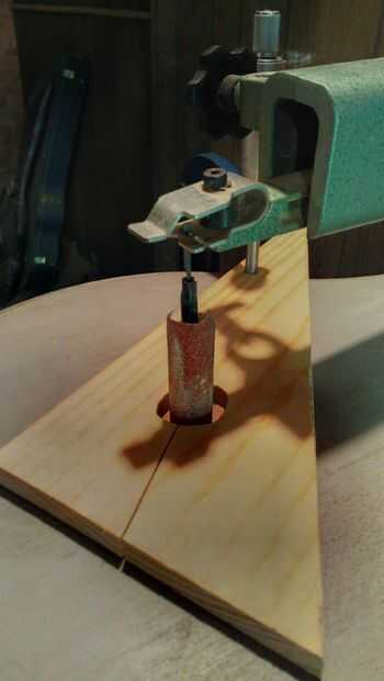 Corté un gran agujero para acomodar el cilindro y se fui! No importa mi inusual método de sujeción. No tengo un par de vicio las abrazaderas (todavía) así que he estado usando un par de cheapo de micrómetros a morder y funciona rematadamente bien.