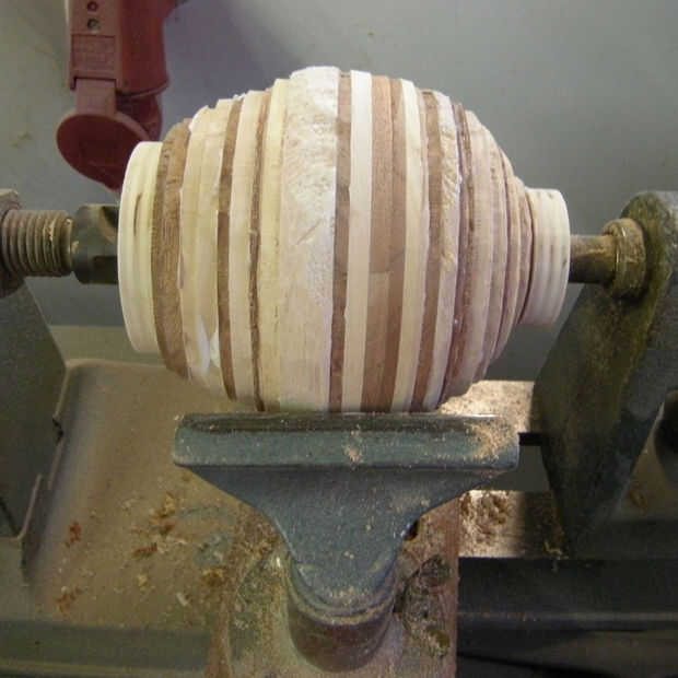 Con un torno que da vuelta terminé la forma. En un segundo me no fui concentrado bastante, así que lo rompió. Explotó en pedazos de 20 más, pero tuvo suerte y pudo encontrar cada trocito para que vuelva a... así que tenga cuidado, este momento impactante es nada que puedo recomendar :)