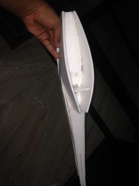 · Recorte plano fuera de su tablero de la espuma, es pegar todas las piezas para darle una forma a continuación. Utilice una pistola de alta potencia tubo y barras de pegamento. El video de construir de rasguño completo de maravilla sangrienta por FliteTest está en: