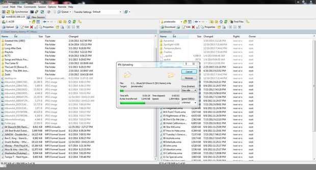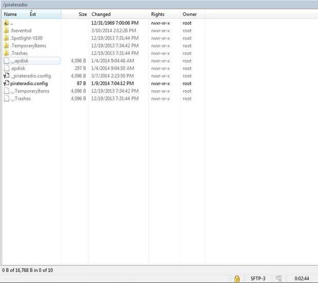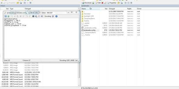 Conecte el cable de red para el IPC y a su router o módem y encienda. Abrir el WinSCP. Para nombre de Host, dirección IP; nombre de usuario y contraseña usar "root". Una vez logueado, ir a la carpeta raíz y abra una carpeta llamada "pirateradio". Arrastre todas las canciones en este archivo. Después, abra un archivo llamado "pirateradio.config" y cambiar la configuración a su gusto. Guardar los cambios, un cierre ese programa.