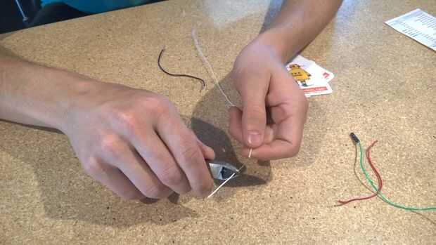 Pelamos un extremo del cable y lo introducimos por el objeto pequeño de metal sacamos del puente alambre. Cuando ya estén juntos lo introducimos por la pieza negra que ya teníamos y para esté justo le ponemos silicón, al final podemos sellaro más con Thermofit.