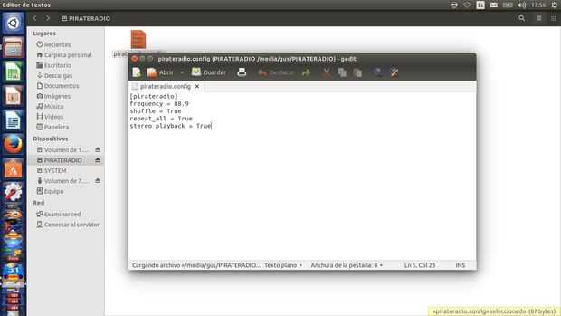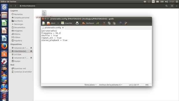es el proyecto de nuestros compadres de casa Inventor hay abrir la Raspberry PI y ahí dentro correr la terminal y programar los parámetros. Nosotros seguimos la guía más sencilla de hacer y simplemente, terminado de grabar el archivo. La de en ISO SD, abrimos el archivo "pirateradio.config".