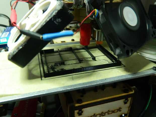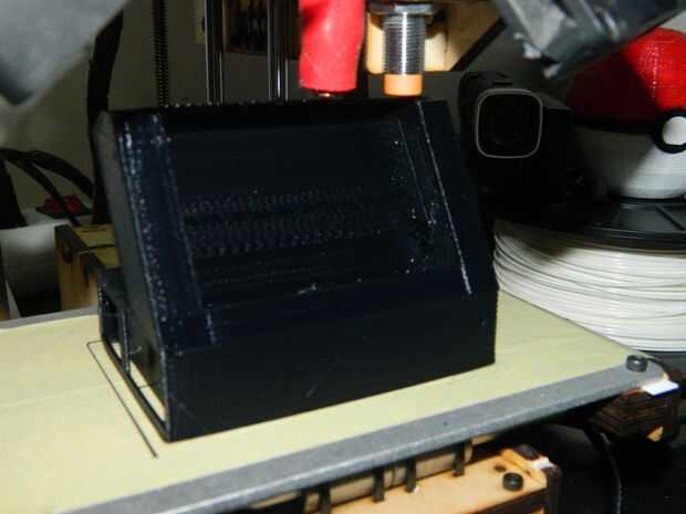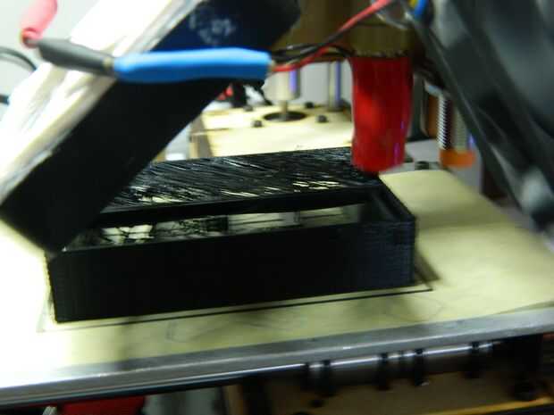 Tiempo de impresión para el caso entero era aproximadamente 2.5 horas. Con capa altura de 0,2 mm y velocidad de tamaño de la boquilla de 50mm/s. es de 0,4 mm.