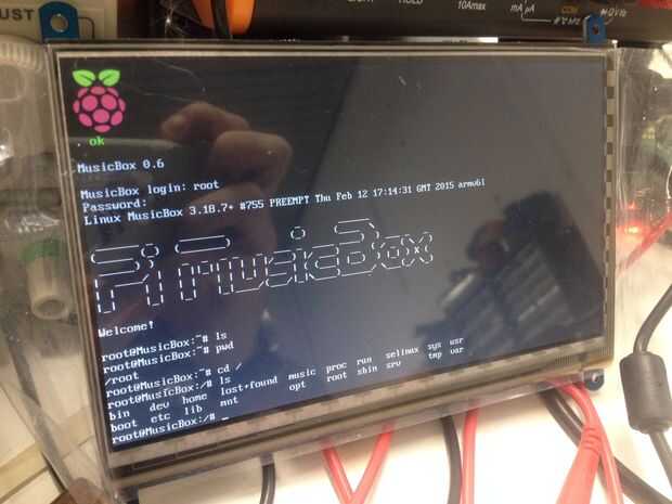 El segundo sistema operativo que instalaremos en frambuesa Pi 2, Musicbox es diferente a Raspian, su propósito es actuar como un servidor no un ordenador Personal. MusicBox es descargado en la Raspberry Pi del mismo exacto modo que NOOBS sin embargo es muy diferente de lo establecido. Cuando se activa el sistema se le pide que inicie sesión con su contraseña preestablecida e inicio de sesión (véase abajo), la contraseña y el login puede ser cambiado después del sistema como arrancado. El Raspberry Pi entonces se convierte en un servidor de música que Strems la música de su elección desde el internet. MusicBox como dije anteriormente tiene un truco aseado, puede controlarse mediante un dispositivo externo, siempre y cuando dicho dispositivo está conectado a la misma dirección IP. Así que controlan la música que se está reproduciendo el Pi, desde mi IPhone, en otra habitación.