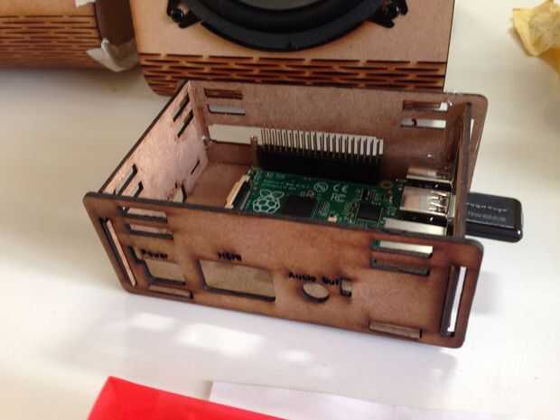 Mientras que el secado de la pieza de cuerpo podemos seguir adelante y construir los casos de Raspberry Pi. Tener 2mm MDF componentes que cortar antes y montarlos juntos. Asegúrese de colocar las piezas en el lugar correcto, le recomendamos que utilice una frambuesa pi como plantilla y asegúrese de que las piezas están juntos correctamente antes de usar pegamento. Las piezas deben deslizarse juntos para crear un cuadro ligero pero sólido. Utilice la pistola de pegamento para unir los componentes juntos asegurándose de no permitir que el pegamento construir mucho, si esto sucede que usted puede experimentar dificultad para la frambuesa Pi para caber dentro. La razón por la que estamos usando una pistola de pegamento aquí es porque el vínculo es casi instantáneo pero también permite un grado de flexión.