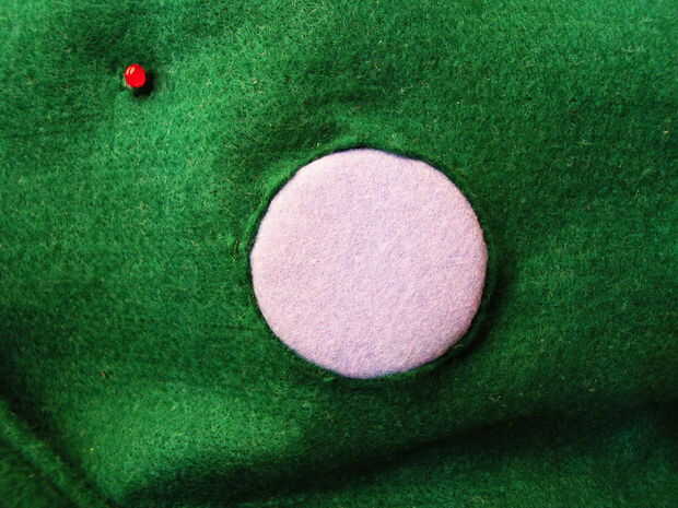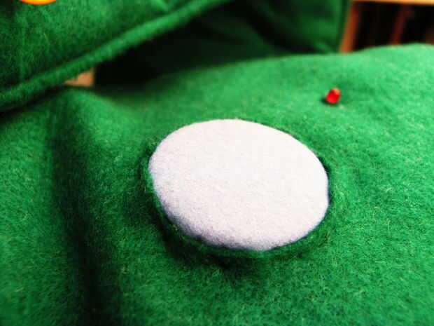 Para los altavoces. Ubicar el altavoz y corte un agujero para que quepa. Esto debe ser exactamente tamaño y circular. Cubierta del altavoz con un cuadrado del segundo color de fieltro. Cosí en forma similar al LED. Esto es muy incómodo. Tratar de mantener tus puntadas apretadas por lo que el orador no escabullirse hacia fuera.