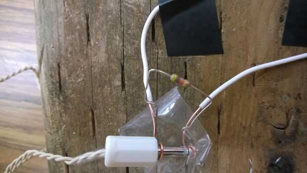 Paso 14: Conectar la resistencia a los extremos de los cables a ambos lados del cerámica auricular.
