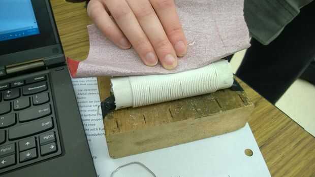 Paso 3: Usando papel de lija, arena a la capa en el alambre de cobre en una franja de aproximadamente pulgadas de ancho en un lado.