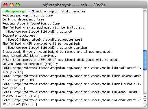 el pianobar instalador le preguntará si desea continuar. Tipo "y" para sí y pulse enter para continuar.