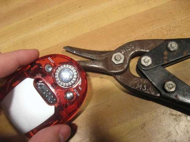 Ahora el nob de volumen en mi radio no saldría, así que aproveché un enfoque diferente. Utilizando a unas tijeras podadoras lata cortan la caja de plástico hasta que todo fue gratis. Luego utiliza algunos poco cortadores de alambre y cortar los bits restantes de la zona de mando. Deben usar protección ocular durante esta parte como plástico estaba volando por todas partes.