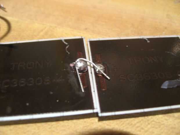 Soldar un alambre largo a la pestaña de negativo de la célula solar de otro .
