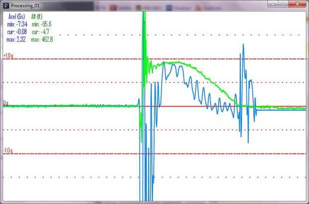 Mi secuencia de lanzamiento ha sido hacer una escritura clara y leer la secuencia antes de colocar el cohete en el cojín para asegurarse de que todo funciona y funcional (ver video). Luego configurar el cohete en el cojín y presurizarla. Con el funcionamiento del proceso, envíe la clara señal de "c", siguió por la señal de escritura "w". Tan pronto como los datos que vienen, empezar su cuenta! Proceso es el seguimiento de las lecturas del último 400 y mostrará la aceleración mínima y máxima, altitud y velocidad. Una vez que el cohete aterriza, golpeó "w" otra vez para detener el flujo de datos. Si crees que has perdido los datos durante el vuelo, llevar el transmisor cerca del receptor y pulsa "r" para retransmitir los datos. La lectura se guardan en un archivo de valores (CSV) separados por comas en el bosquejo de procesamiento de la carpeta "datos de gráfica " con un identificador de tiempo en el nombre del archivo. Haga espuma, enjuague, repita.