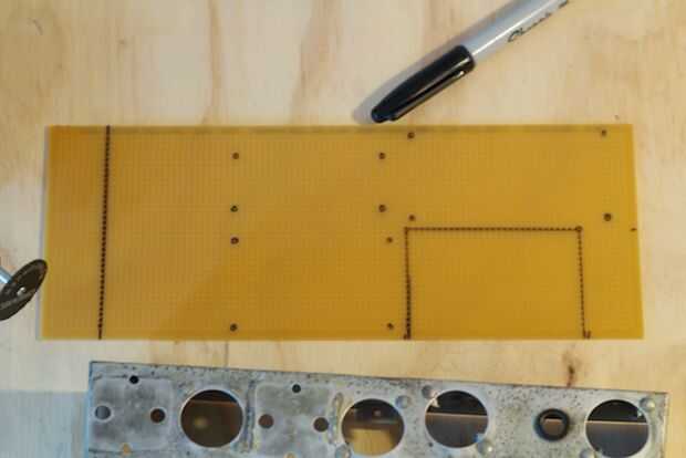 Preparar chasis. Decidí usar una placa base PCB para poner todos mis circuitos. Esta base se conecte directamente en el chasis metálico original de la radio. Yo he usado la herramienta Dremel para cortar el tablero.