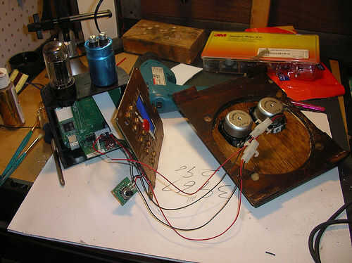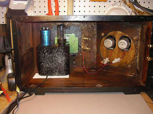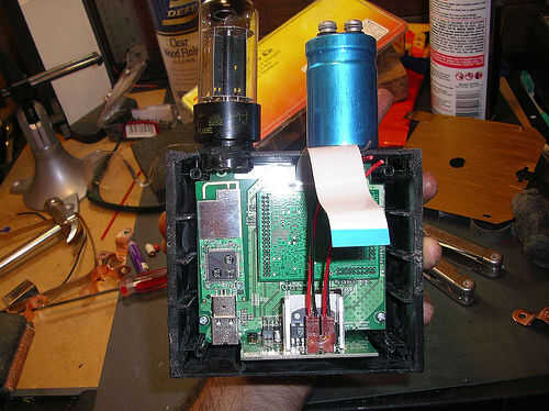 He reconstruido un radio vintage. El dispositivo es ser capaz de reproducir música y descargar diariamente Noticias podcast.He utilizado una tableta de Android como base, STA540 para un amplificador, altavoces Blaupunkt GTx-542 y, por supuesto, una é