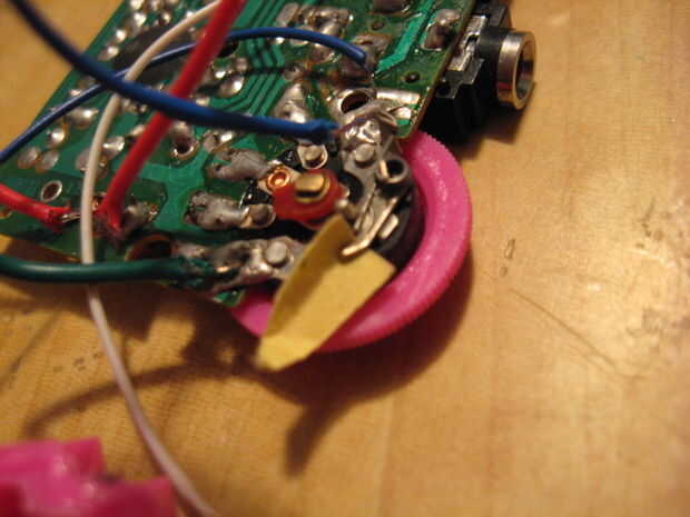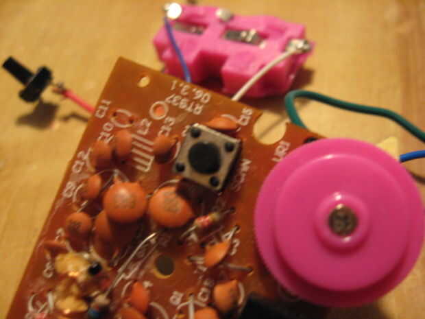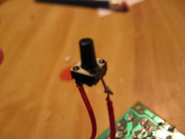 esta es probablemente la parte más técnica. usted tiene que soldar un interruptor on/off y un botón (es decir, de un viejo reproductor de vhs o algo por el estilo) a la placa de circuito.