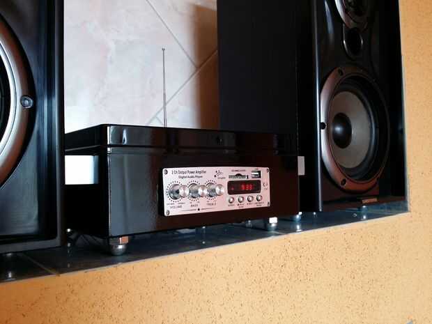 Finalmente ha llegado el "gran día". Fue un gran supprisse no sólo para mi padre en la ley sino para todos los que estaba allí. Todo el mundo estaba muy impresionado con mi proyecto "regalo". Realmente no tengo ninguna más fotos de la radio y los altavoces porque tenía prisa para entregar en el tiempo. Allí falta un cuadro de mando bruja que conectado a la radio. Pero puedes ver un pequeño diodo de ir en medio de la radio para recibir comandos de control remoto. Feliz otra vez para mostrarle mi trabajo y ver sus comentarios.