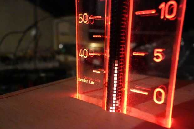 Hice este carrito escritorio pen de un amigo. Cuando las plumas están en el cuadro, el tubo de Nixie indica nada en la pantalla. Sacar un lápiz y se enciende la letra correspondiente a la pluma que falta. También tiene un medidor de flujo de oxígeno