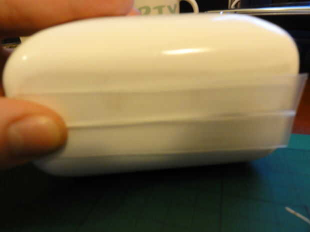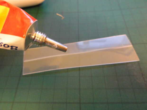 He pedido en línea una acrílico bisagra extruida que puede ser unida con adhesivo plástico duro. Hacer una pequeña capa en la bisagra y también el lado de la radio. Después de 30 segundos presionando entre ellos manteniendo el pliegue bisagra centrado en el entre sus conchas. Mantener en su lugar con cinta adhesiva y dejar hasta 12 horas garantizar la máxima resistencia.