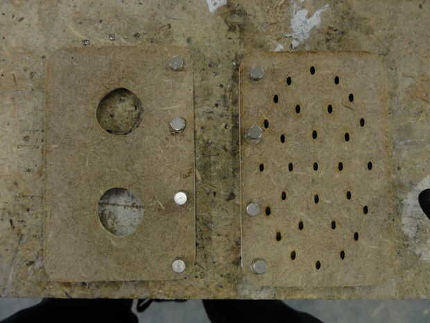 Espacio ellos igualmente a lo largo del borde exterior de sus caras interiores en columnas de dos asegurándose de que cada lado con un poste diferente hacia abajo.