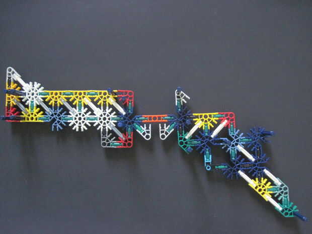 Imagen 2: Añadir partes B, C y D, conectores gris, barras blancas y un separador de plata.