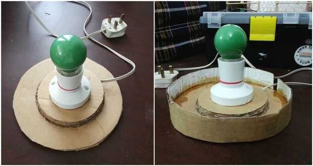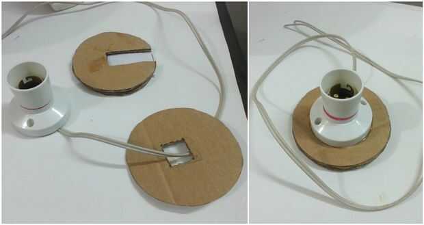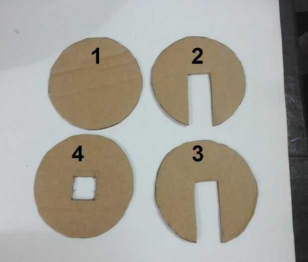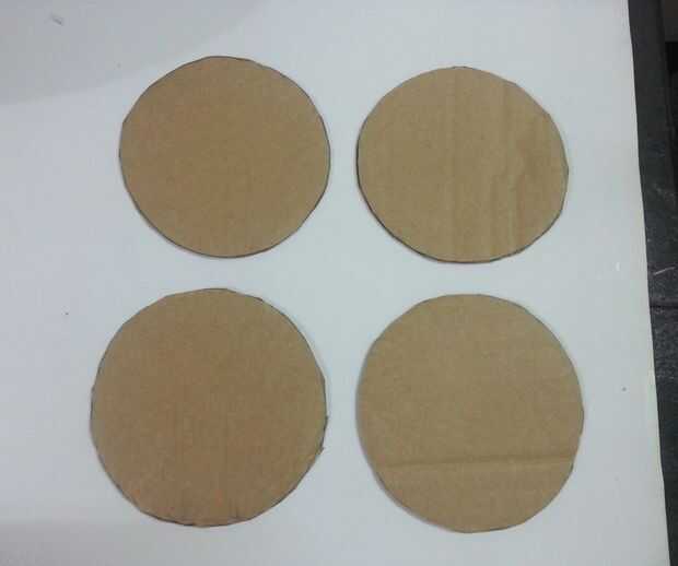 Cortar 4 piezas redondas del mismo tamaño de cartón más pequeño que la pantalla (esto es para el sostenedor de bulbo),
