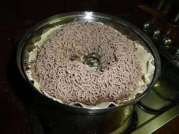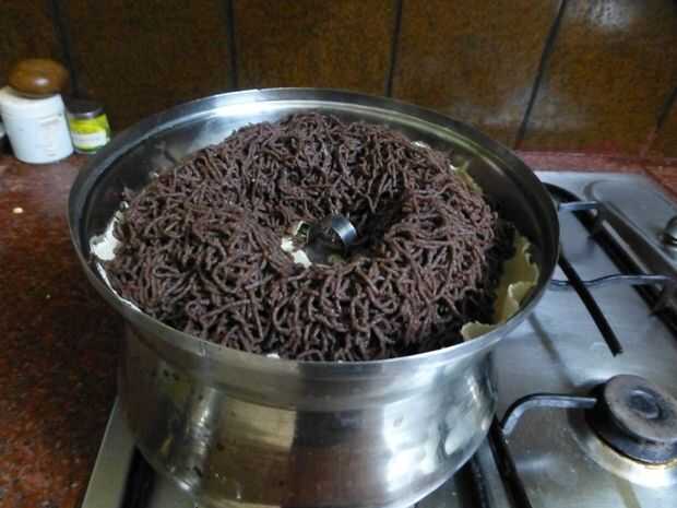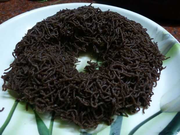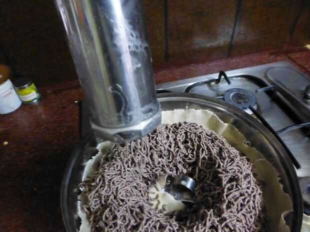 • Llenar la prensa de fideos con la masa preparada de Ragi