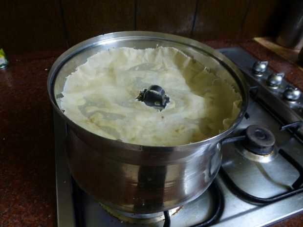 • Presione la pasta sobre la bandeja con paño de algodón en la olla a vapor