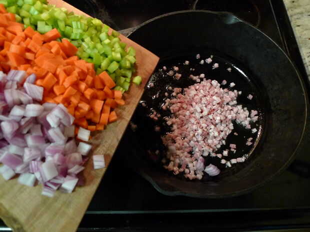 «Preparación: en una cacerola, preferentemente de barro o aluminio grueso y con un diámetro de unos 20 cm, primero añadir la panceta en cubos y deje que se derrita (rehogar) durante unos minutos. Añadir a la sartén 3 cucharadas de aceite o 3 cucharadas de mantequilla, así como las cebollas finamente picadas, zanahorias y apio y dejar que este cocinero suavemente por unos minutos, añaden la carne picada, mezclan bien con una cuchara de madera y cocinan hasta que se doren y todo es "candente". Luego agregar el vino y revuelva suavemente hasta que se evapora totalmente. Por último, agregar la pasta de tomate o puré de tomates sin piel, cubierta y hervir lentamente durante unas 2 horas, añadiendo cuando es necesario un poco de caldo. Hacia el final, añadir la leche para suavizar la acidez del tomate. Sazonar con sal y pimienta."