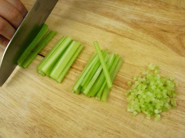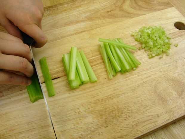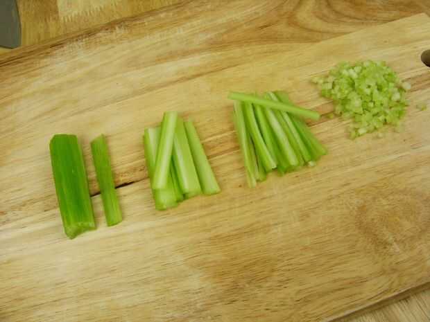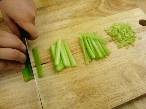 Paso 3: Cortar en cubitos la zanahoria y el apio...