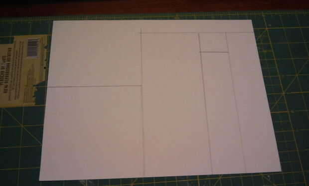 4) una vez tuve un cálculo de la anchura y altura de cada sección de la pieza, saqué una caja de esas dimensiones en cartulina. Si la cartulina era demasiado pequeña, grabó las hojas con cinta scotch para hacer una hoja más grande.