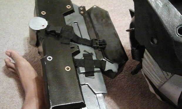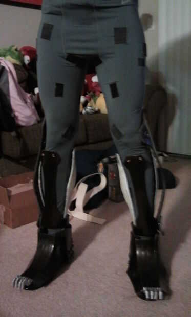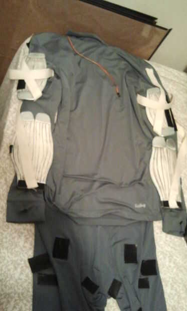3. Utilicé la fuerza industrial Velcro para unir la mayoría de las piezas al compresión traje. Me aseguré de estirar la pieza antes de pegar las tiras de Velcro para un mejor agarre.
