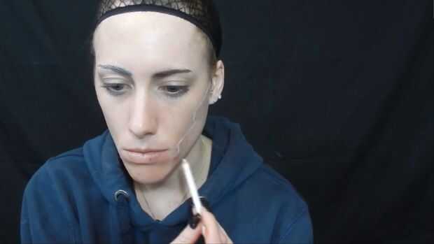 Me cubrió una ceja y luego usar un delineador blanco para bosquejar hacia fuera de mi mirada.