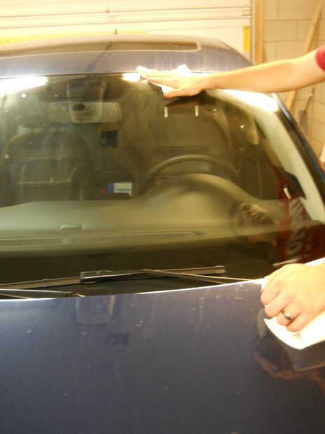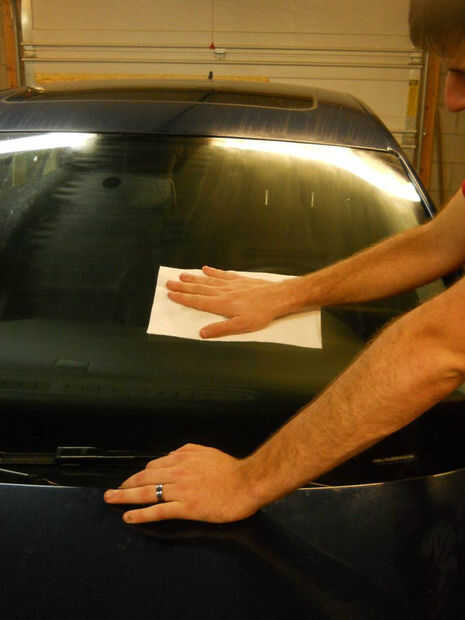 Use una toalla de papel limpia y suavemente la lluvia-x en el parabrisas.