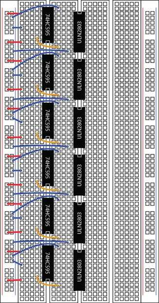Nota: El ULN2803 de más abajo no muestra que su pin 9 está conectado a tierra. Asegúrese de que usted conecte este a tierra.