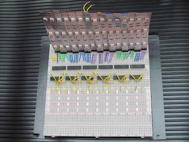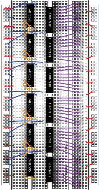 Ahora conectaremos el cambio registros juntos. A partir de la extrema derecha, conecte el pin 9 al pin 14 del registro de desplazamiento a la izquierda. Ver imágenes.