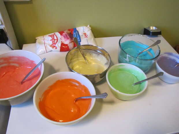 publicado originalmente en: http://www.mommyknows.com/how-to-rainbow-cupcakes-in-a-jarPaso 1: Lo que necesitará Precalentar el horno a 350fLo que necesitarás:mezcla para pastel blanco en caja 11 lata de glaseado blancovariedad de colores de glaseado