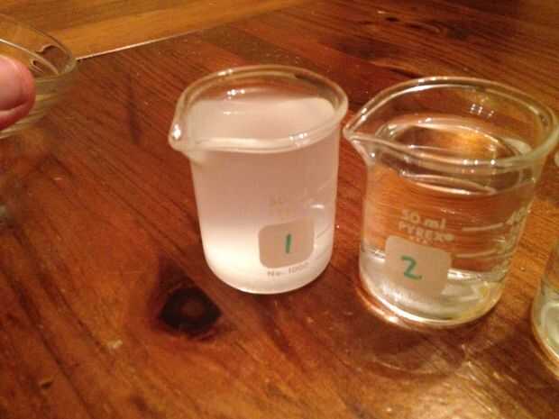 2. en cada vaso, agregar sal y agua en las cantidades identificadas en la hoja de trabajo adjunta.