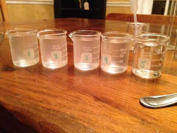 1. etiquetar cada uno de los 5 vasos 1-5.