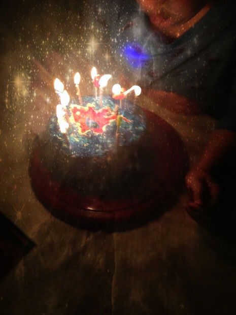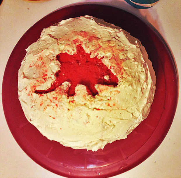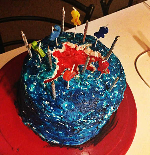 Como he dicho, mi objetivo era hacer un pastel que parecía a los dinosaurios en el espacio. Esto fue lo más cercano que he podido conseguir.
